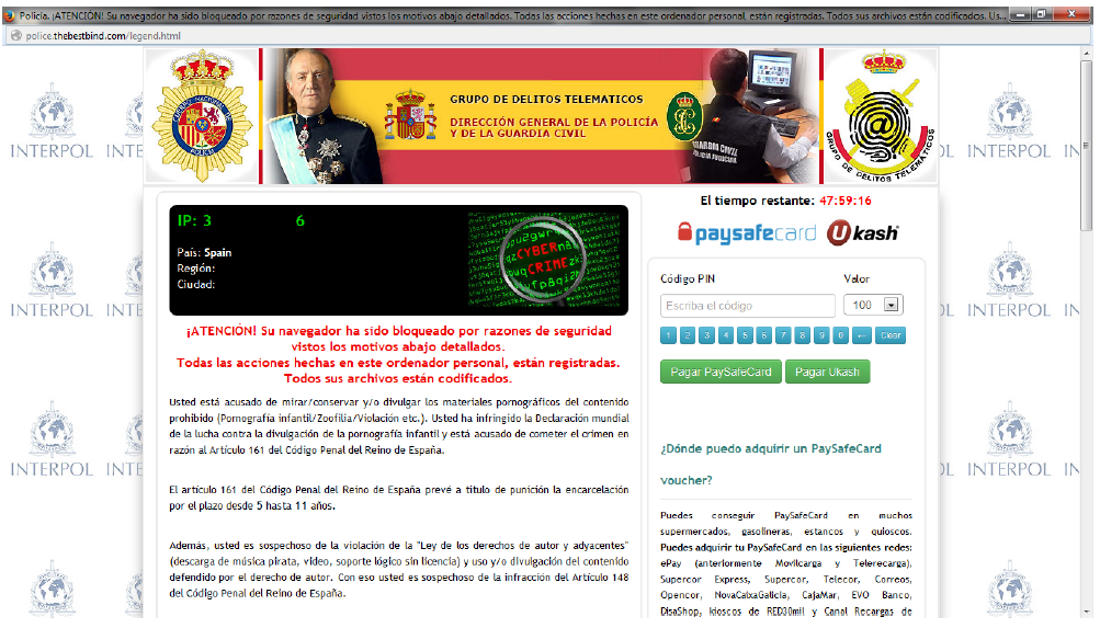 Asimismo, el mensaje muestra acusaciones graves como por ejemplo, haber visitado pornografía infantil o violaciones de la propiedad intelectual que, aunque no son ciertas, hace que el mensaje contenga una mayor presión y carga psicológica.